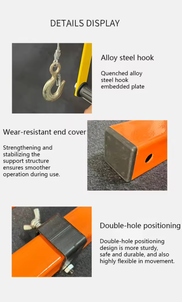 Állítható méretek: A függőleges tartóoszlop 0,9–1 méter között állítható, míg az emelőkar kinyúlása 0,53 méter.